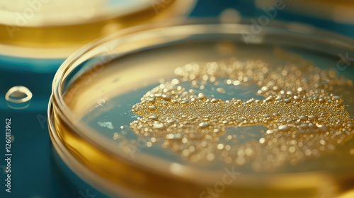 A close-up of a petri dish with bacteria cultures, surrounded by blank space for copy or branding placement.