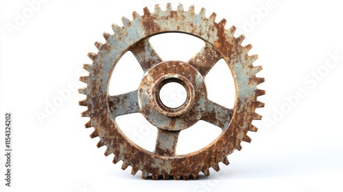 A close-up of a rusted metallic gear, showcasing its worn texture and vintage appeal.