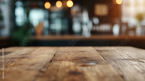 A close-up of a rustic wooden table emanating a warm ambiance, perfect for cozy gatherings, enhancing the inviting atmosphere of home or cafe spaces.