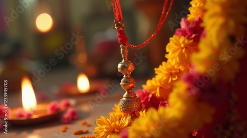 sacred, thread, closeup, altar, traditional, flower, religious, symbol, spirituality, culture, ceremony, heritage, ritual, decoration, ethnic, beauty, significance, offering, worship, closeup, textile, craftsmanship, design, vibrant, colours, spiritual, faith, devotion, cultural, aesthetic, visual, presentation, tradition, festival, celebration, artistic, decorative