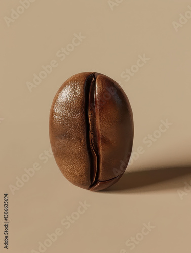 A close-up of a single coffee bean on a neutral background, highlighting its texture.
