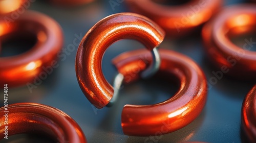 close, up, single, red, metal, ring, metallic, sheen, set, dark, background, few, other, ring, scattered, shot, finish, object, closeup, texture, steel, symbol, gold, three-dimensional, love, macro, circle, wedding, silver, design, business, illustration