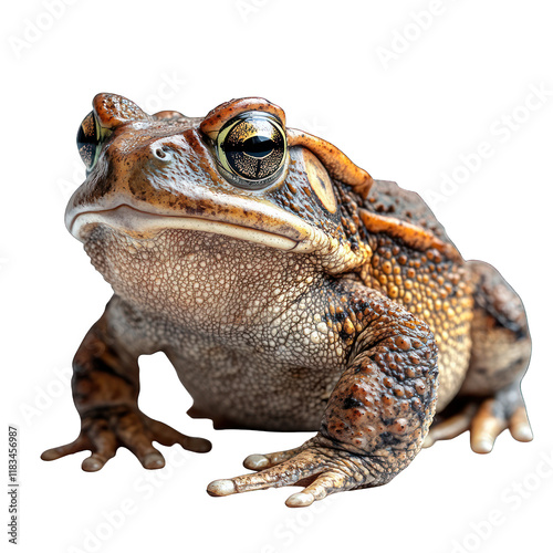 A close-up of a textured frog with detailed skin patterns.