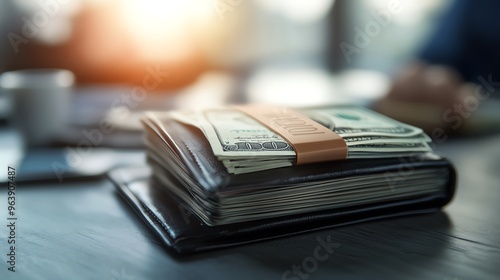 A close-up of a wallet filled with cash, symbolizing wealth and financial security in a modern setting.