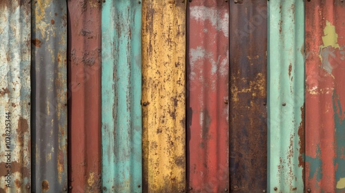 metal, corrugated, wall, texture, rust, weathered, old, aged, vintage, grunge, surface, background, paint, chipping, peeling, faded, patina, abstract, industrial, rustic, retro, distressed, oxidized, iron, steel, brown, red, green, blue, grey, yellow, orange, white