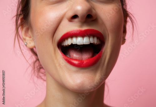 woman, smile, lipstick, red, pink, beauty, cheerful, close, up, expression, joy, cosmetic, make-up, portrait, happy, teeth, vibrant, female, face, mouth, laughter, skincare, fashion, style, bright, youthful, elegant, playful, confidence, glamour, attractive, radiant, healthy, glowing, trendy, modern, aesthetic, portraiture, happiness, emotion, personality, copy space