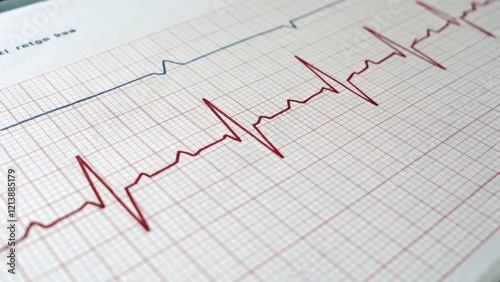 A close-up of an electrocardiogram (ECG) printout, showing heart rhythm patterns with clear spikes and waves indicating heart activity.