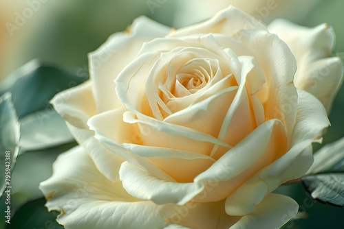 A closeup of an ivory rose, with its petals painted in soft shades of yellow and cream, creating intricate patterns that resemble delicate lacework. smooth texture of the petals surface. generative AI