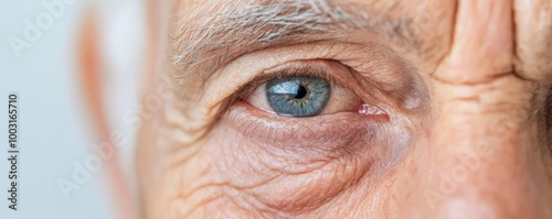 A close-up of an older persons face showing how natural asymmetries in the eyes and mouth become more pronounced with age, affecting overall symmetry.