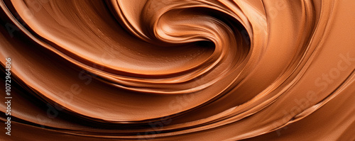 A close-up of creamy, swirled chocolate spread showcasing rich, smooth texture and glossy finish.