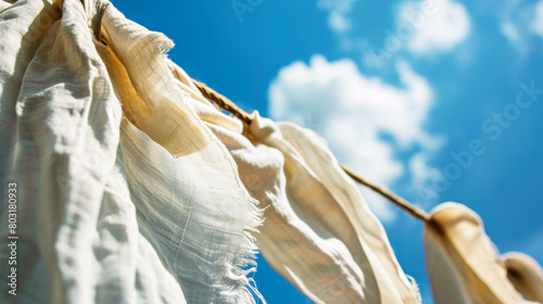 A close-up of delicate cloth swaying gracefully on a clothesline