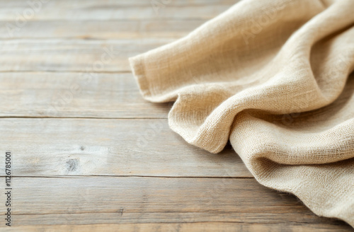 A close-up of mocha mousse-colored linen draped elegantly over a rustic wooden table