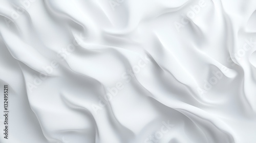 A close-up of rippled, pristine white silk fabric with soft folds and textures, suggesting elegance and luxury