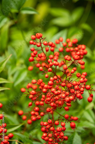 A closeup of the sacred bamboo's berries in the garden. Victoria BC Canada