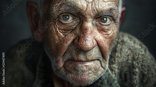 A close-up portrait of an elderly man, showing his wrinkled face and piercing eyes.