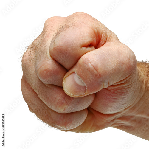 A close-up shot of a clenched fist, symbolizing power and determination against a clean white background