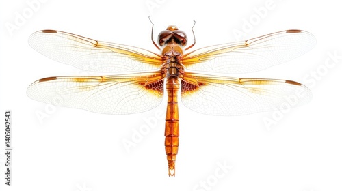 A close-up shot of a dragonfly with delicate wings, hovering in mid-air with a white backdrop --ar 16:9 --v 6.1 Job ID: 6b361d16-2bdf-48e4-bd15-d0482d96649f
