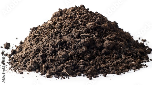 A close-up shot of a small pile of dirt on a clean white surface