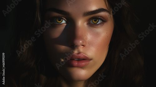woman, beauty, face, hair, model, fashion, eye, make-up, glamour, skin, person, closeup, people, brunette, lip, dark, 1, long, make-up, black, smiling, head, looking, smile, sensuality, beautiful, confident, assertive, calm, attractive, white, girl, chiaroscuro