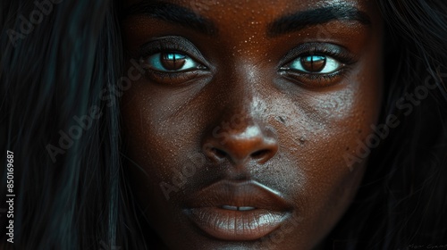 A close-up shot of a woman's face with bright blue eyes, perfect for use in editorial or commercial content