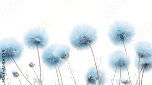 A close-up shot of fluffy light blue flowers with delicate details, isolated on white, perfect for using in design projects with a clipping path for seamless integration.