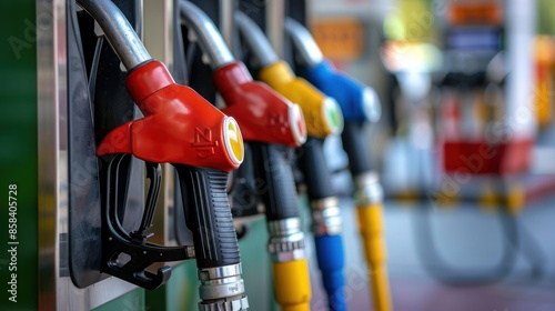 A close-up shot of fuel pumps at a gas station against a blank background, providing space for adding branding or promotional messages related to petroleum products