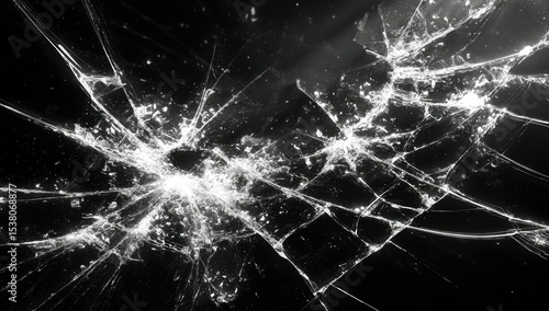 glasses, shattered, broken, cracked, fracture, crack, damage, destruction, impact, spider's web, web, black, background, white, light, texture, detail, intricate, complex, line, pattern, surface, debris, piece, sharp, jagged, messy, chaotic, splintered, distorted, dark, contrast, monochrome, abstract, design, art, photo, image, visual, graphic, damaged, ruined