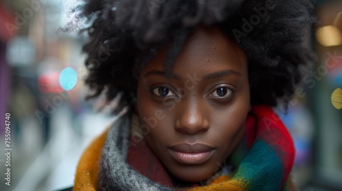 person, close, portrait, multiracial, individual, foulard, fashion, style, accessory, winter, clothing, fabric, texture, pattern, cosy, warm, trendy, closeup, shot, head shot, ethnic, mixed, race, detail, intricate, unique, colourful, cultural, stylish, chic, fashionable, knit up, woven, material, cold, weather, outfit, item, attire, adornment, neck, wear, apparel, dressed, statement, view, dress, code