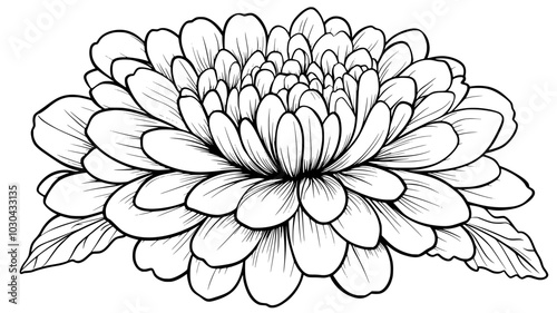 A close-up view of a single pompon chrysanthemum flower head, vector illustration art