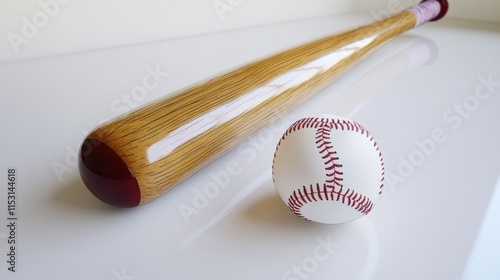 A close-up view of a wooden baseball bat beside a classic white baseball, symbolizing America's favorite pastime.