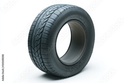 A close-up view of a worn-out tire showcasing intricate tread patterns on a white backdrop isolated on transparent background