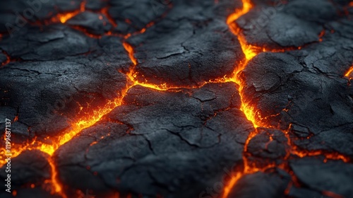 A close-up view of cracked volcanic rock, illuminated by glowing lava, showcasing the intense heat and power of nature.