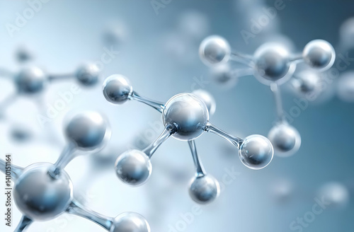 A close-up view of molecular structures showcasing interconnected atoms in a serene blue environment, representing the essence of scientific innovation.