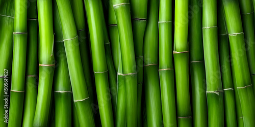 A close-up view of vibrant green bamboo stalks, showcasing their unique texture and natural beauty. Perfect for nature lovers and environmental themes.