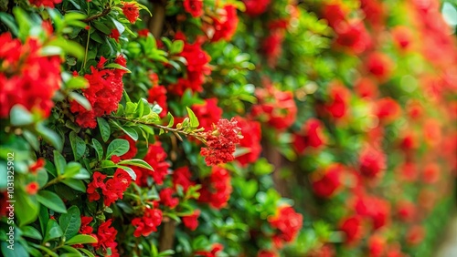 A close-up view of vibrant red flowers blooming in a lush green foliage, creating a captivating tapestry of nature's artistry.