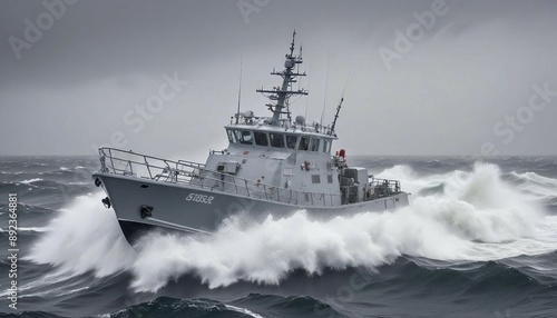 coastal, patrol, boat, navigating, rough, sea, winter, storm, snow, flurry, strong, wind, maritime, vessel, turbulent, weather, wave, stormy, scene, cold, icy, nautical, environment, sea, condition, ocean, wind, winter storm, motion, frosty, intensity, visibility, challenging, extreme, situation, ship, warship, military, water, battleship, naval, war, port, fleet, sky, harbor