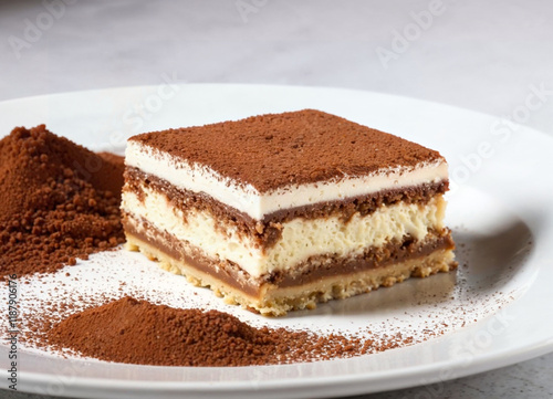 A collection of beautifully presented tiramisu slices showcasing creamy mascarpone layers, coffee-soaked sponge, and a dusting of rich cocoa powder, offering a classic and indulgent Italian dessert ex