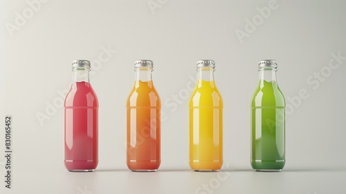 A collection of colored glass juice bottle mockups on a white background. The concept of health drinks and beverage packaging. Generative Ai.