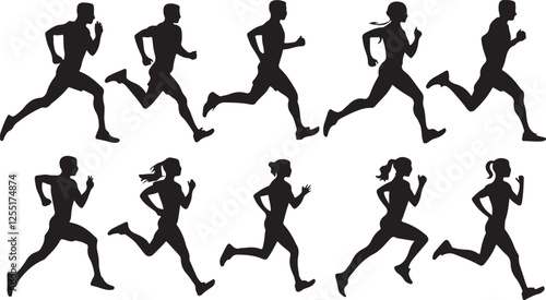 A collection of dynamic running silhouettes, showcasing both men and women.