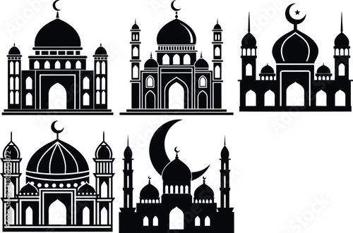 mosque, islamic, muslim, religion, islam, architecture, building, silhouette, black-and-white, icon, icon, set, design, element, illustration, graphic design, religious icon, ramadan, eid, celebration, faith, spirituality, template, pattern, symbol, emblem, cultural, heritage, travel, arabic