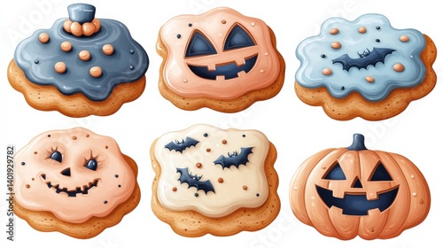 A collection of Halloween-themed cookies featuring playful designs and vibrant colors