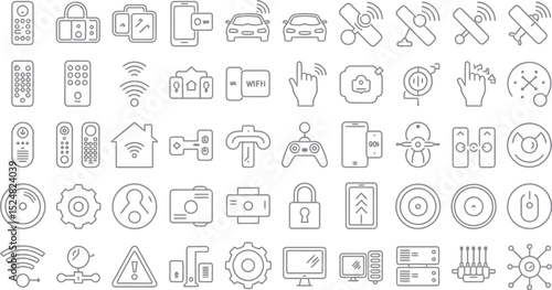 remote, lock, baggage, smartphone, car, satellite, wi-fi, touch, camera, joystick, drone, disc, gear, user, padlock, arrow, mouse, signal, pressure, warning, server, network, technology, automation, connectivity, device, interface, control, system, digital, cyberspace, computer, monitor, screen, antennae, router, sensor, collection