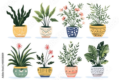 A collection of potted plants against a white background