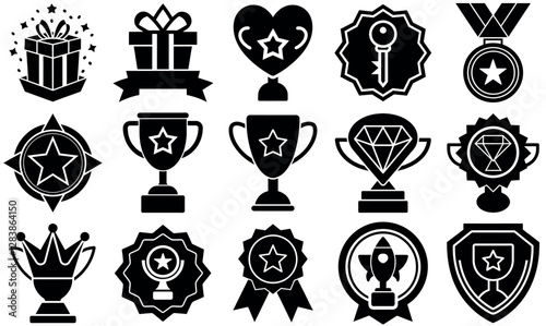 A Collection of Reward Icons Representing Achievements and Celebrations