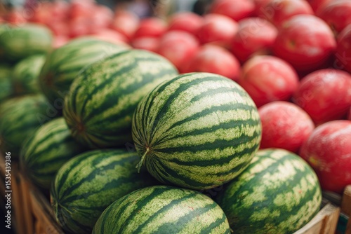 watermelon, fruit, food, agriculture, produce, ripe, harvest, stack, green, red, striped, round, fresh, market, summer, healthy, growth, farm, farming, garden, closeup, plant, diet, nourishment, grocery, sweet, crop, organic, vegetarian, vegan, vibrant, pile, abundance, texture, natural, raw, delicious, juicy, background, colours, stall, sale, ingredient, vitamin, nobody, display, retail, local