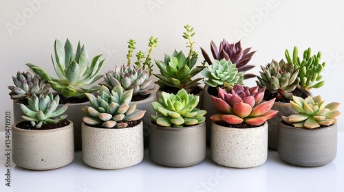A collection of succulent plants arranged in modern ceramic pots pic