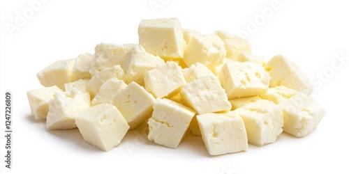 A collection of uncooked chunks of vegan cheese, suitable for various dishes and dietary preferences. They are versatile in use.