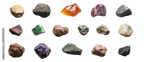 A collection of unique, colorful gemstones showcasing natural beauty and diversity. transparent background