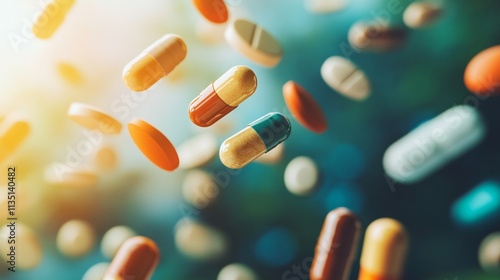 A Collection of Various Medical Pills and Tablets Displayed on a Reflective Surface for Pharmaceutical Use and Health Awareness Campaigns