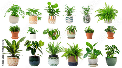 A Collection of Vibrant and Lush Indoor Plants in Decorative Pots